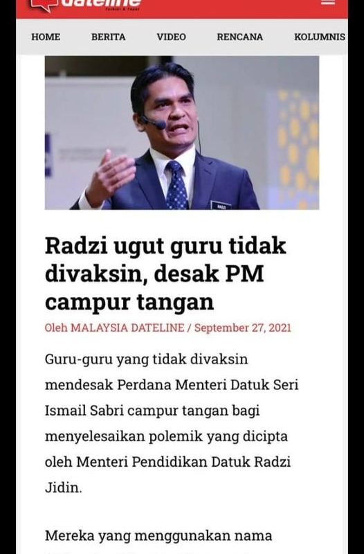 Radzi Ugut Guru Tidak Divaksin, Desak PM Campur Tangan Umum Radzi Ugut Guru Tidak Divaksin, Desak PM Campur Tangan