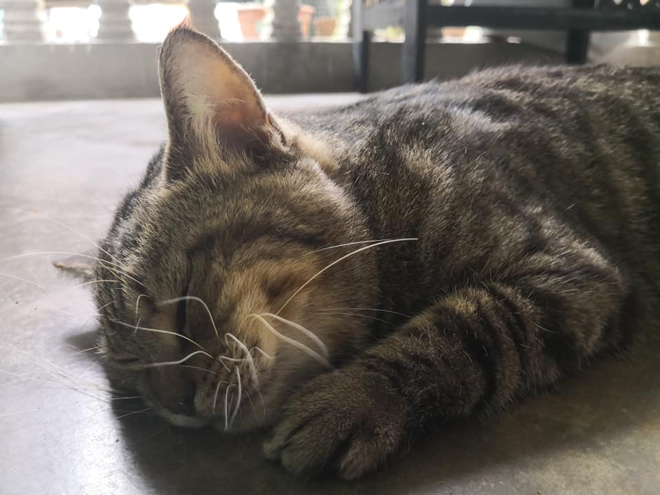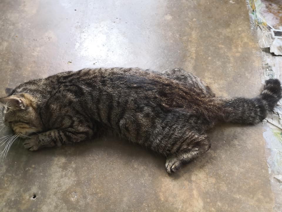 Nampak macam tidur belakang mesin basuh, rupanya dah mati. Patutlah tak datang makan dari malam tadi. Petang semalam elok je.