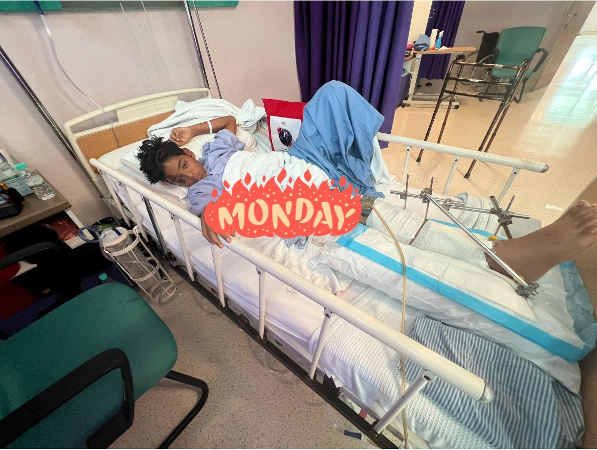 Insyaallah lepas operation kena belajar fisio dulu dan kalau tak ada apa boleh balik. Cuma kalau kaki dia ok pun doktor kata dia dah tak macam dulu (cacat kekal).