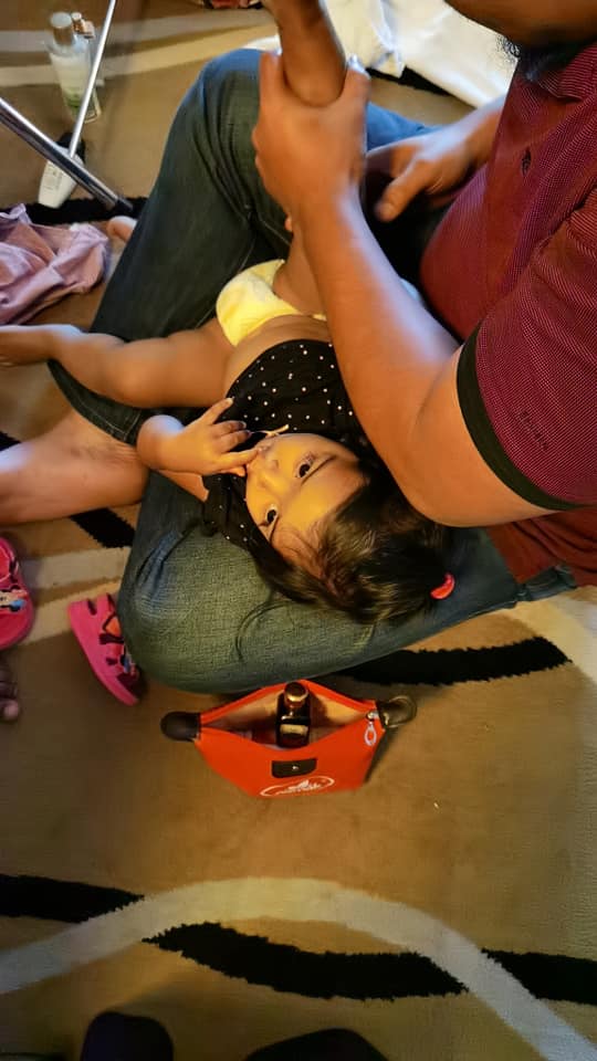 Lepas ayah dia dah urut tu, dia berhenti menangis tapi masih takut nak berjalan.